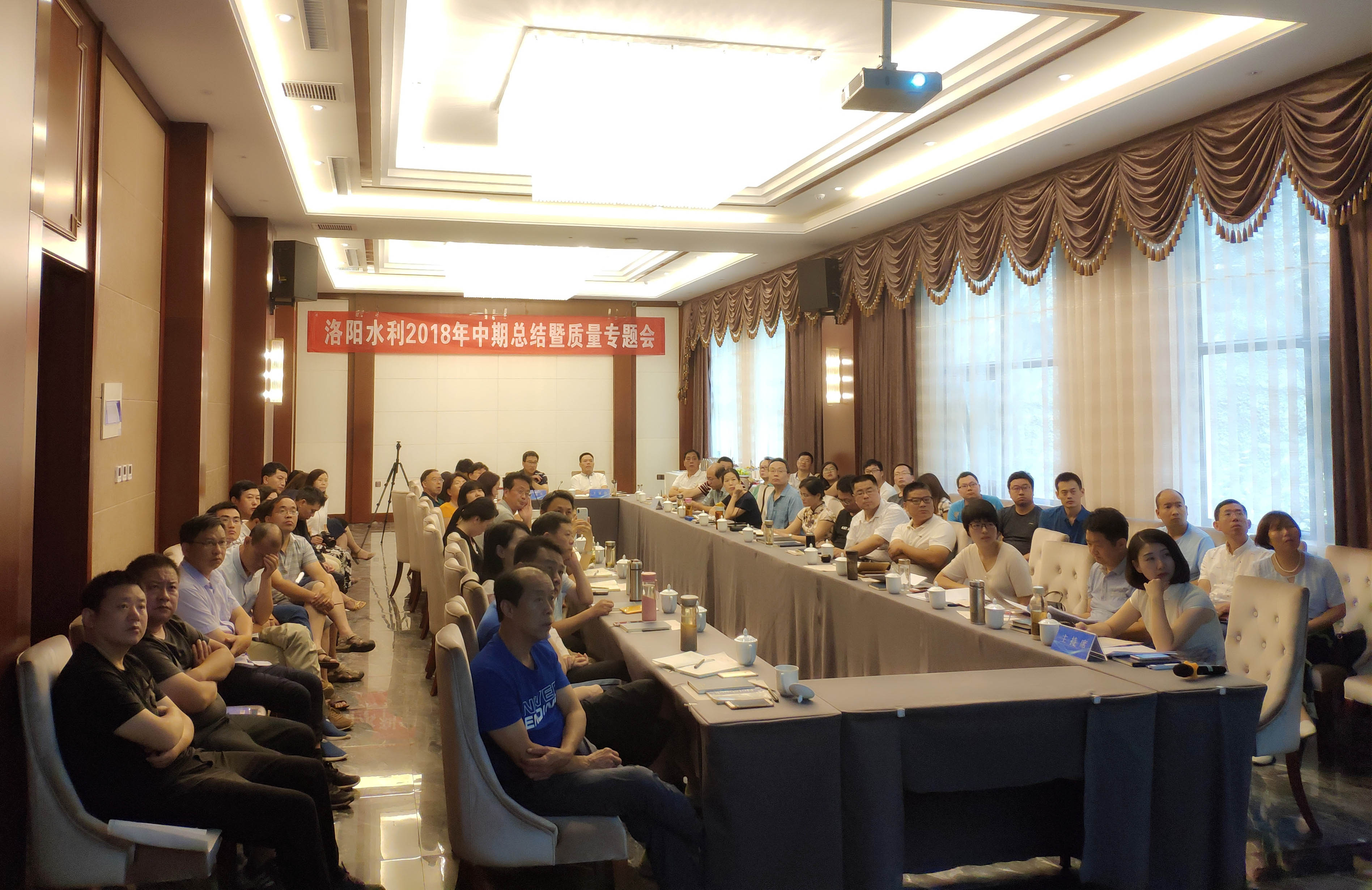 2018年7月28日-29日,中金環境旗下洛陽水利在洛陽欒川,召開2018年中期總結暨質量專題會議。參加會議的領導有:中金環境副總裁兼洛陽水利董事長王家會、洛陽水利總經理曹國東、公司副總經理及各部門中層領導共54人。會議由洛陽水利綜管中心承辦、總經理助理張修遠主持。