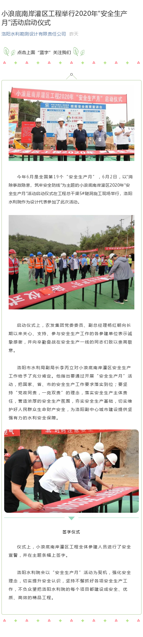 小浪底南岸灌區工程舉行2020年“安全生產月”活動啟動儀式
