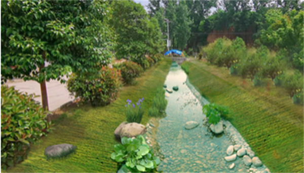 該工程位于新安縣老城區(qū)內(nèi),總長約3.6km,通過對河道清淤疏浚,岸坡采用噴播進行生態(tài)防護,堤頂設(shè)置景觀節(jié)點,對澗河進行生態(tài)綜合整治。本次設(shè)計在滿足防洪安全的前提下,以生態(tài)修復為路徑,打造出功能綜合的生態(tài)水岸。